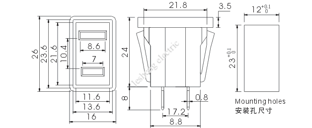 2. 电气参数Operating data: 15A, AC250V/AC250V